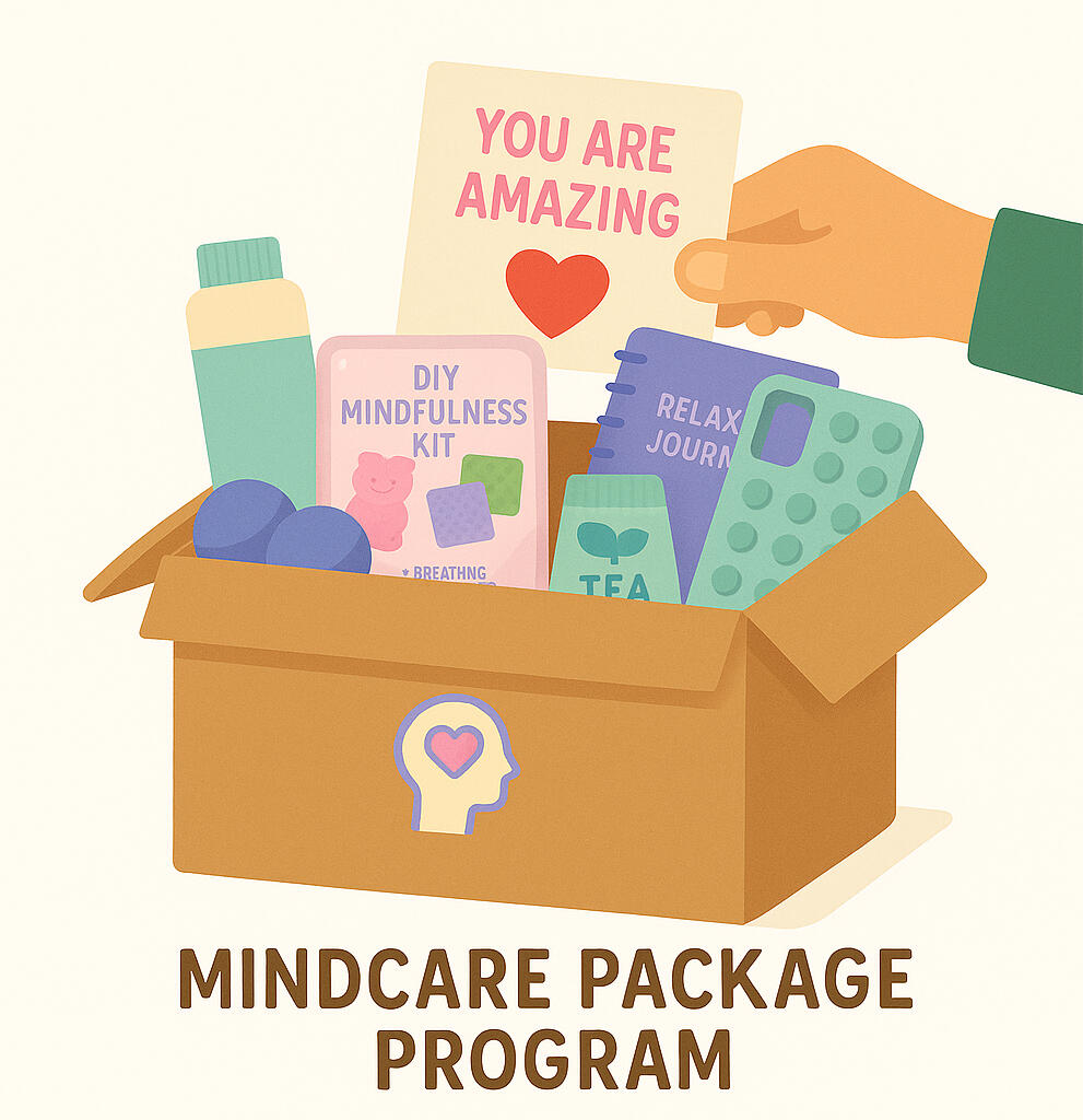 The MindCare Package Program offers support kits designed to bring comfort and encouragement to youth. Each kit contains supportive items and tools that promote emotional wellness. Packages are shared to individuals, schools, or the community.